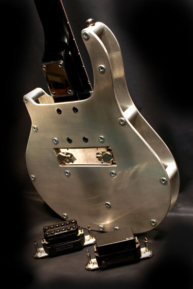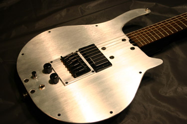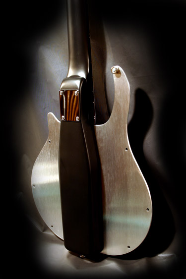 The body is made of aircraft grade aluminum, with graphite or maple neck. The instrument is nicely balanced and the overall weigh is similar to a Les Paul ** guitar made of mahogany.